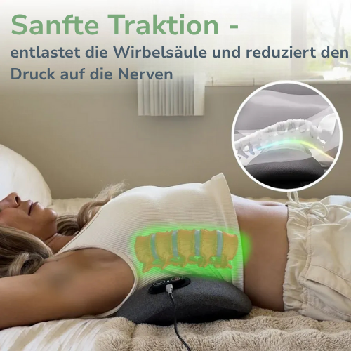 Das Gerät kombiniert sanfte Wärme, gezielte Vibration und schonende Dehnung, um die Wirbelsäule zu entlasten und die Rückenmuskulatur zu entspannen. So wird die Durchblutung gefördert und Verspannungen lösen sich ganz natürlich.
